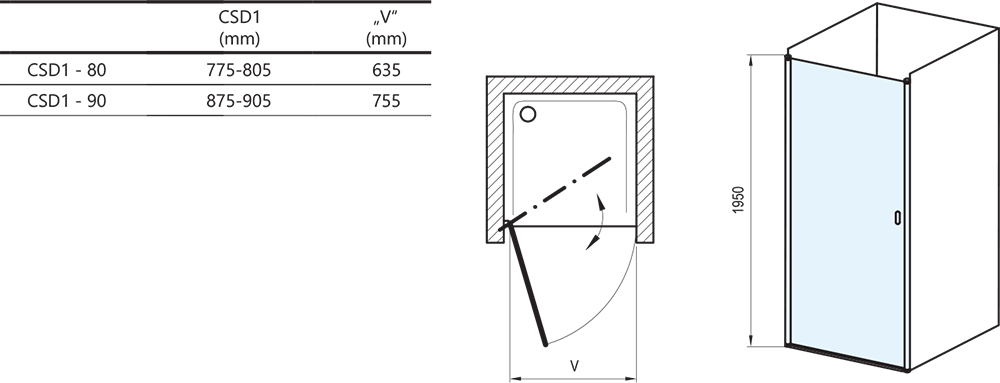 A zuhanyajtó kifelé és befelé is nyitható, amely így megkönnyíti a zuhanyozás utáni szellőztetést, ezenkívül kényelmes belépést tesz lehetővé zavaró vízcseppek nélkül a padlón.